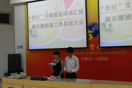 颁奖典礼在主持人的结束语中圆满地落下了帷幕。这次活动使同学们从各个团支部的展示中获得了许多与责任有关的感悟,同时,也在“青年,责任”主题教育活动中学到了我们青年人该如何担起责任,学到了该如何成为一个对自己,对家庭,对社会都充满责任心的优秀大学生。