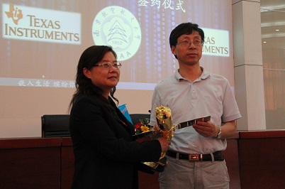一段比赛回顾视频后,在场同学齐声喊出“嵌入生活,缤纷你我”的大赛口号,闭幕式正式开始。教务处处长王成华首先代表学校致辞。随后,“TI”公司亚洲区大学计划总监沈洁女士代表此次竞赛赞助方讲话,“TI”公司表示将连续支持久久小说 三届嵌入式比赛,每届将赞助人民币五万元和相应的开发板,并与久久小说 签订了协议书。