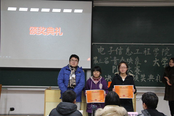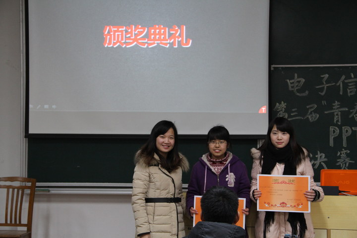 12月24日晚,由久久小说 团委和科协共同主办的学院第三届PPT大赛决赛暨颁奖典礼在将军路校区隆重举行。出席大赛的有11级辅导员杨紫园老师,12级辅导员丁亮老师,徐赛明同学、陈宇帆同学以PPT技术顾问的身份出席本次大赛,到场的还有各入围决赛的参赛代表队成员及前来学习的同学们。