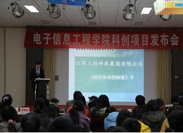 发布会在热烈的掌声中拉开帷幕。首先,赵永久副院长为发布会致辞。赵院长向同学们介绍了参加科创项目对个人发展的重要意义,指出我院参与科创人数多、项目层次高、师资力量强等优势,极大激发了同学们参与科创项目的积极性。接下来,到场老师和研究生代表依次从研究背景、项目内容、研究目标等方面解读了他们的课题,并提出了相应的要求。此外,发布会还收到了校外企业-江苏三恒科技公司提供的项目。