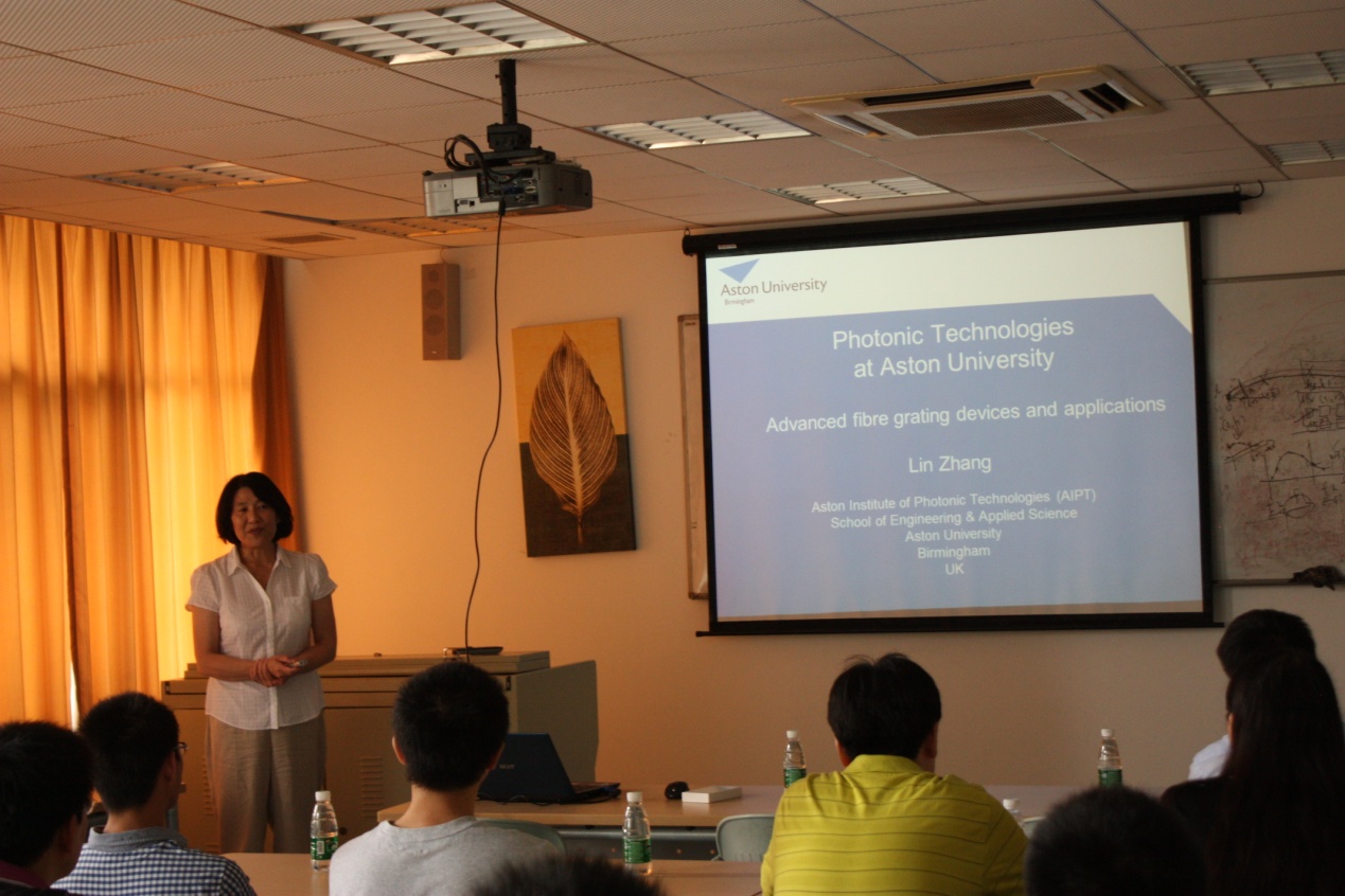 2013年9月12日上午,由英国阿斯顿大学教授张琳教授做“关于阿斯顿大学的光子学技术——先进光纤光栅器件及其应用”学术报告,此次学术报告在明故宫校区12号楼209会议室举行。来自南京航空航天大学微波光子学实验室、解放军理工大学等的20余未位老师和同学听取了本次报告。