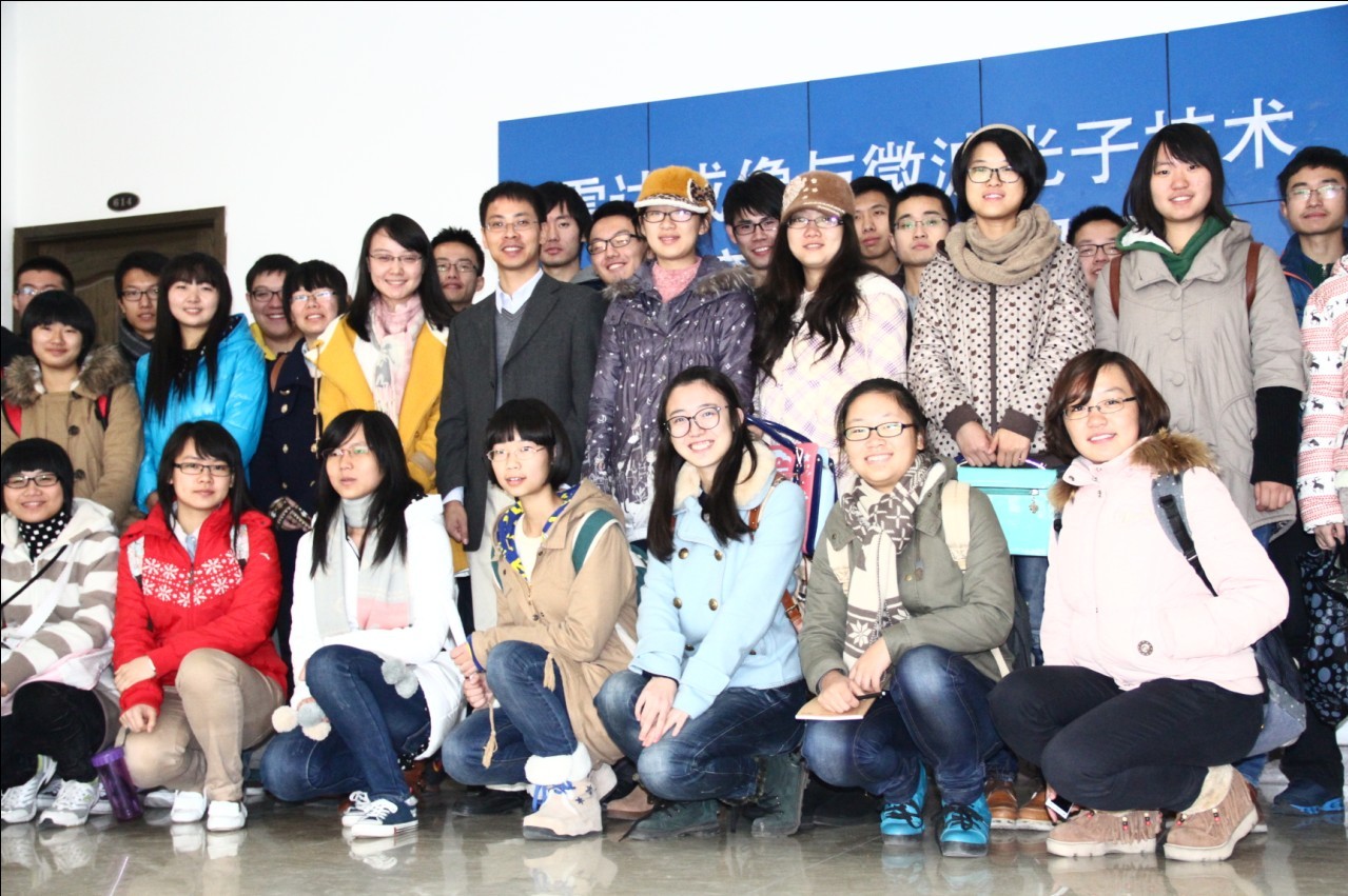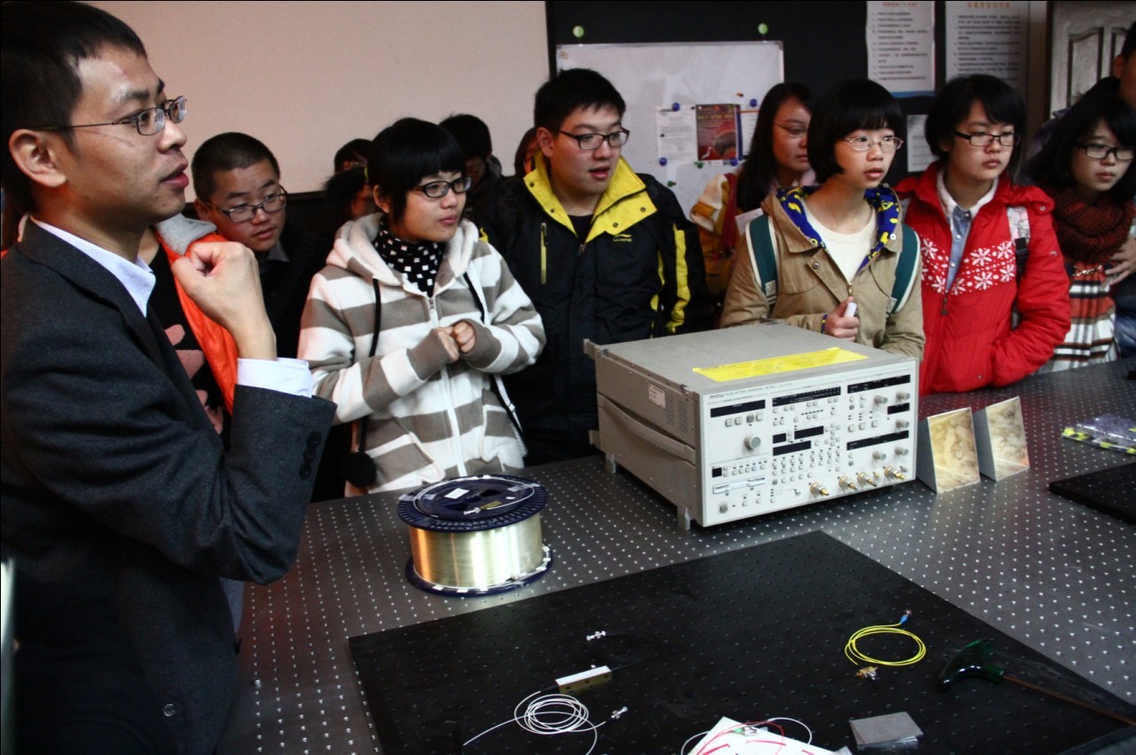 在沙龙开始之前,参加此次沙龙的42位大一新生来到学院微波光子学教育部重点实验室。潘教授为大家详细介绍了该实验室的三大科研功能,用很形象的比喻地向大家讲解了微波的学科意义,同时介绍了本实验室里我院取得的成就。潘教授谈到实验室很多重大突破都是学院在读研究生完成,并鼓励大家多钻研,假以时日,在学生期间也能获得出色的科研成果。