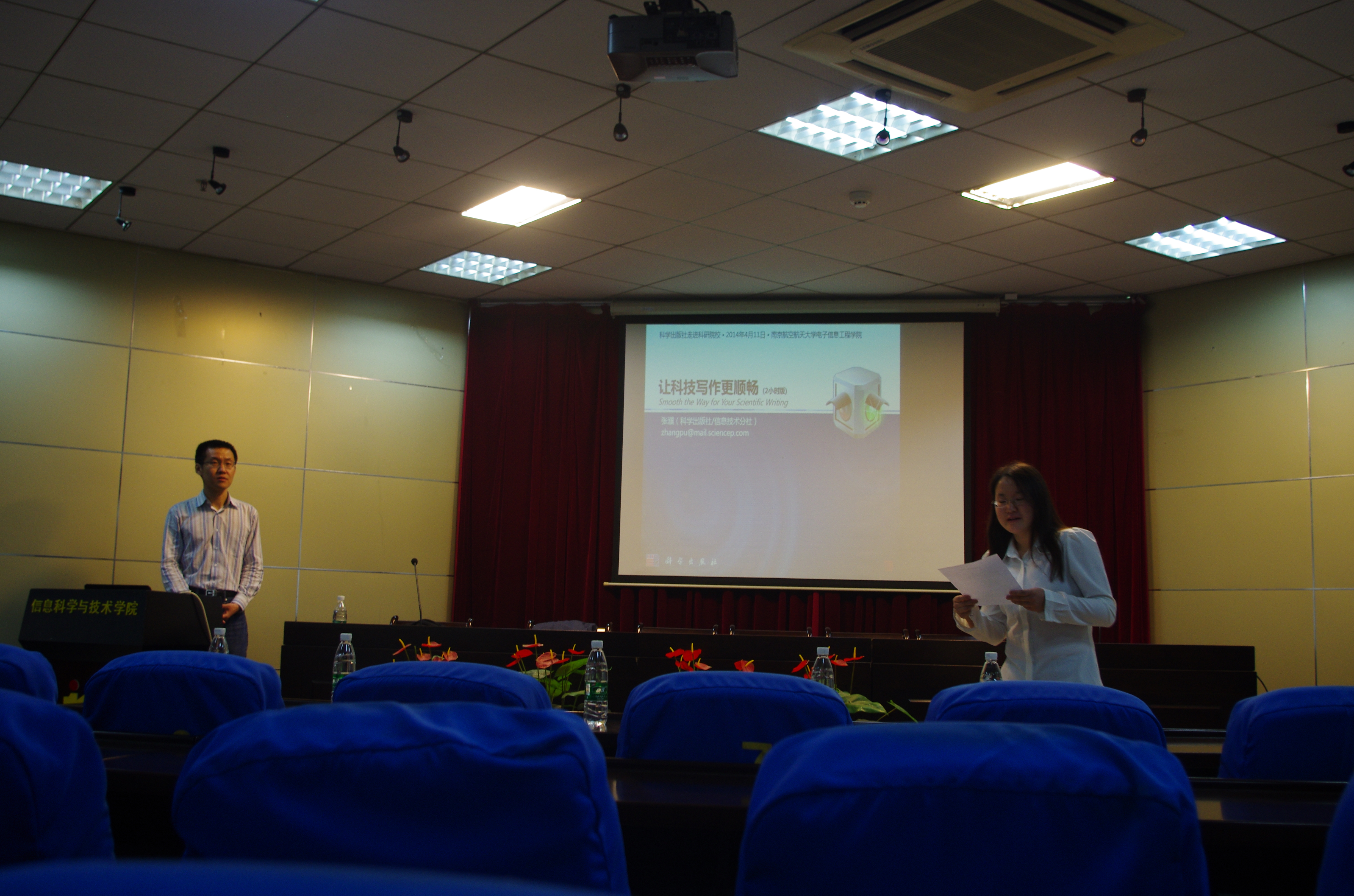 2014年4月11日上午10点,来自科学出版社信息技术分社的张濮副社长在明故宫校区12号楼为我院师生带来了一场名为“让科技写作更顺畅”的公益讲座。
