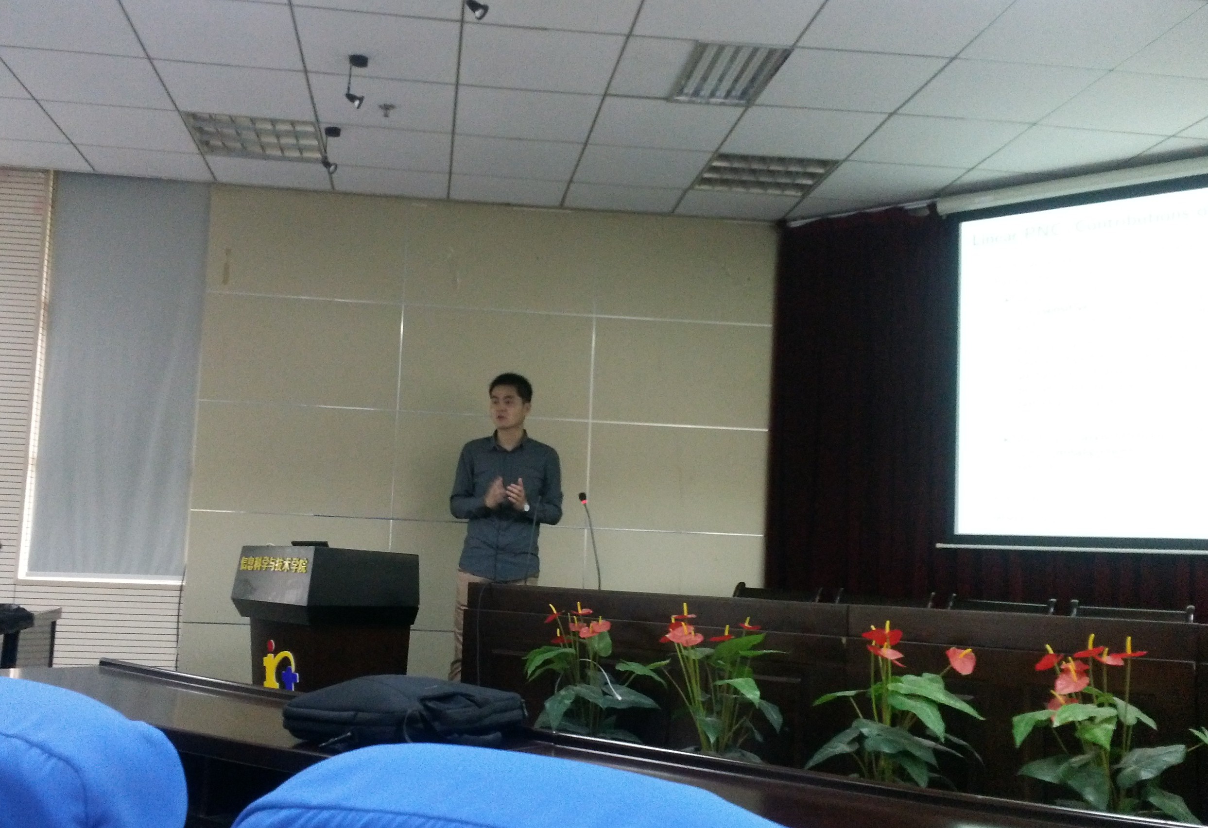 2014年4月18日上午,新南威尔士大学时龙博士应邀访问了久久小说 ,并为我院师生带来了一场题为“Physical-Layer Network Coding: from Theory to Practice”的学术报告。报告会由院长周建江教授主持,久久小说 张小飞老师、肖昊老师和学生共同参加了报告会。