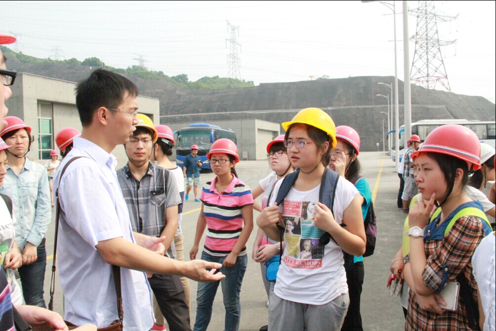 参观实习环节共分三个部分。在葛洲坝电厂的参观中,高级工程师们带学生们进入厂区内部,实地见证了每一个重要机械的工作流程。同学们近距离接触着那些正在运转的机器,工程师同时解释工作原理,带着大家一会深入地下厂房,一会上到坝面,身边就是隆隆作响高速运转的机器。虽然烈日炎炎,但丝毫不减同学们的学习热情。工程师们一面介绍着眼前的机器,一面向同学们提问题,帮助大家运用已经学过的知识理解电厂机械的工作原理。同学们对这样的学习方式兴趣十分高,不时向工程师们提出问题,旁听的同学们也进行讨论,