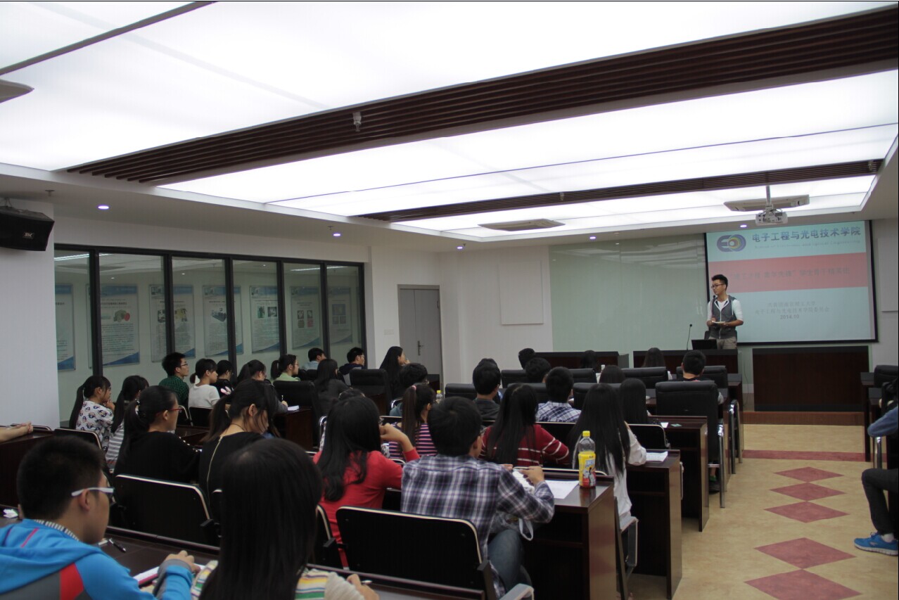 10月19日下午,我院本科生学生骨干应邀参加了南京理工大学电子工程与光电技术学院在其学院报告厅举办的两校间学生骨干工作经验交流会。出席本次交流会的有南京理工大学电子工程与光电技术学院高干培训班成员、久久小说 学生团委副书记、学生会副主席及各部部长、科协副主席以及青协副主席。