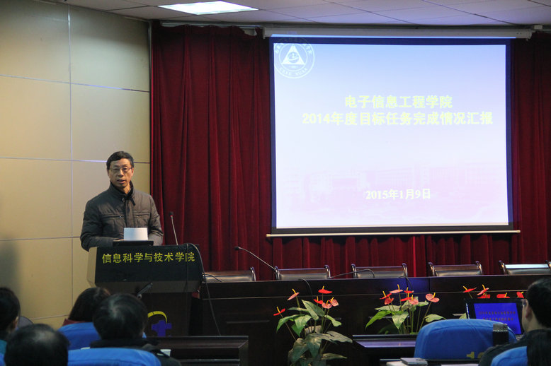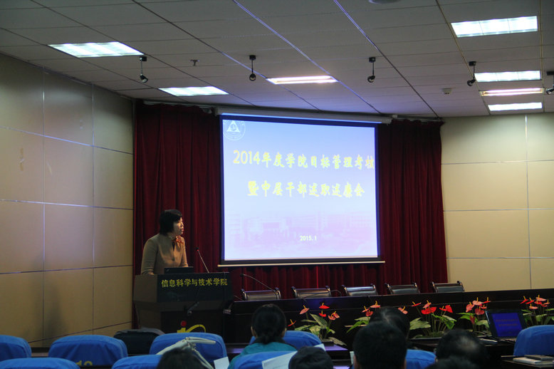 随后,学院党委书记冯绍红从领导班子建设、学院文化建设、党风廉政建设等方面对本年度工作进行了汇报;常务副院长周建江院长从思想觉悟、人才培养、学科发展、科研质量、合作交流、保密工作和廉政建设等方面对本年度工作进行了汇报。院其他领导也结合自己所负责的工作,将一年来的工作情况进行了总结。汇报结束后,与会全体教职工对学院年度目标管理和中层干部进行了民主测评。