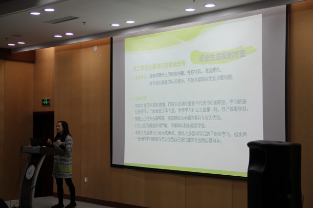 经过短暂休整,培优育人座谈会于16点在将军路区图书馆六楼读者互动中心举办,担任此次座谈会主持的是学院党委副书记王伟华。会议针对延长学年学生及学习困难学生的教育问题展开讨论,内容包括学院年级学风建设情况,根据学生手册相关条例对学生学习基本要求及处理管理办法进行说明,还有心理咨询老师分析学困生的心理状况,为家长如何进行帮扶提出切实建议;请到了学习成绩好转的退学试读学生现身说法自己的转化之路。会议每位家长准备《学生手册》及其子女校学习的成绩单,详细讲解学校相关管理办法,同时建立起班主任与家长交流的平台,充分提供家长在学困生帮助中需要的准备工作,座谈会在家长与班主任的热烈讨论下圆满结束。