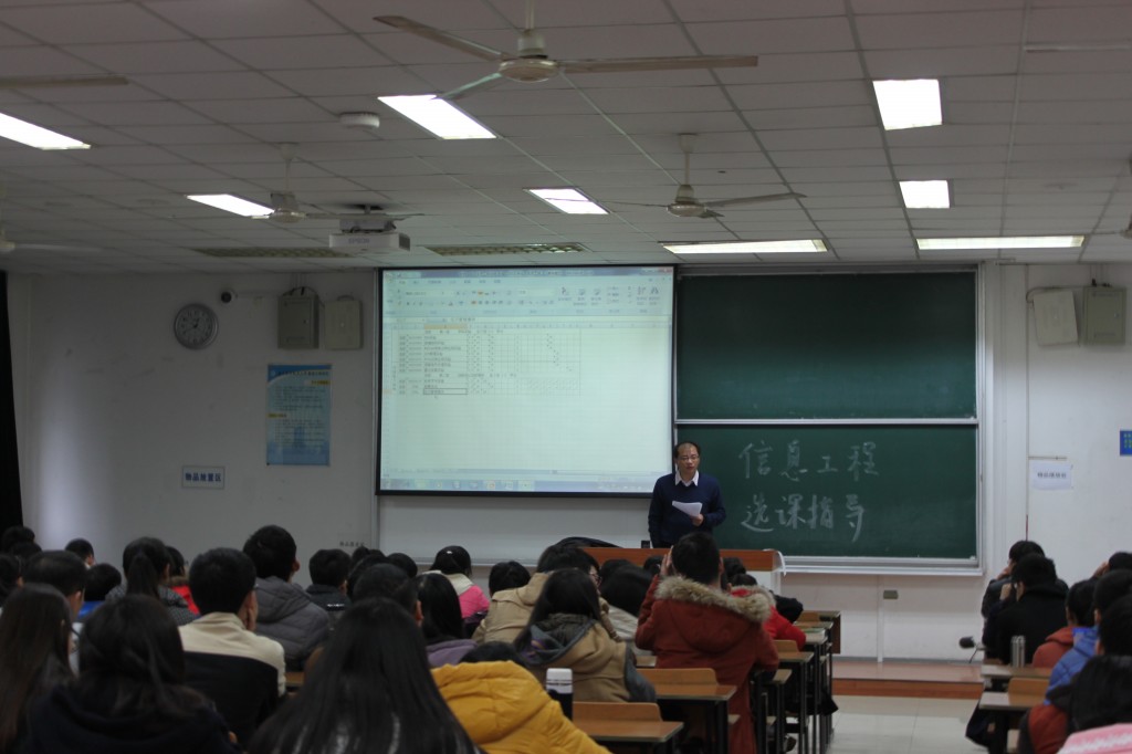 2015年12月3日到9日,我院对2013级本科生进行专业选课指导工作,本次工作由学院教学副院长张弓教授领导,各专业负责人、系主任、班主任、本科教务员、教学秘书、辅导员组织实施,旨在对学院第一次大类招生的年级进行专业分流之后系统的专业选课指导,帮助学生熟悉培养方案,更好理解专业培养方案,明确自身专业学习方向。