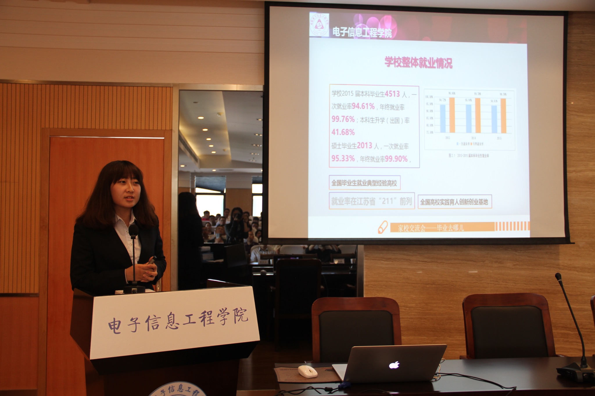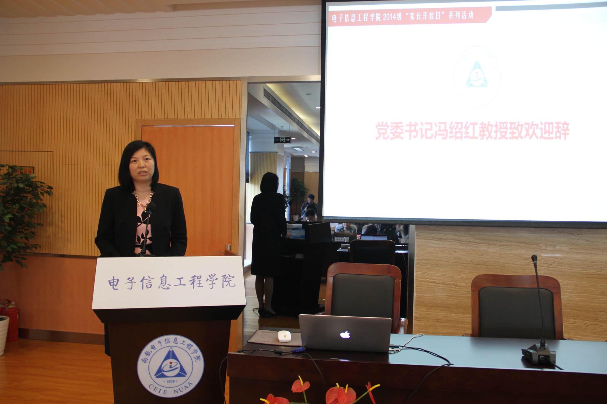 2016年4月29日,我院在将军路校区举办了“育人合力,家校同行”2014级家长开放日系列活动,2014级近200位学生家长从全国各地赶来参加此次活动。家长开放日系列活动作为电子信息工程学我院的传统特色活动之一,是向家长展示学生在校生活的重要窗口,其内容包括大学教育交流会、电子信息大类专业分流动员会、培优育人座谈会和亲子互动素质拓展四个部分。学院党委书记冯绍红、常务副院长周建江、副院长赵永久、副院长刘少斌、党委副书记王伟华、校心理健康教育中心陈瑜、杨易老师及2014级全体班主任等皆出席了本次活动。