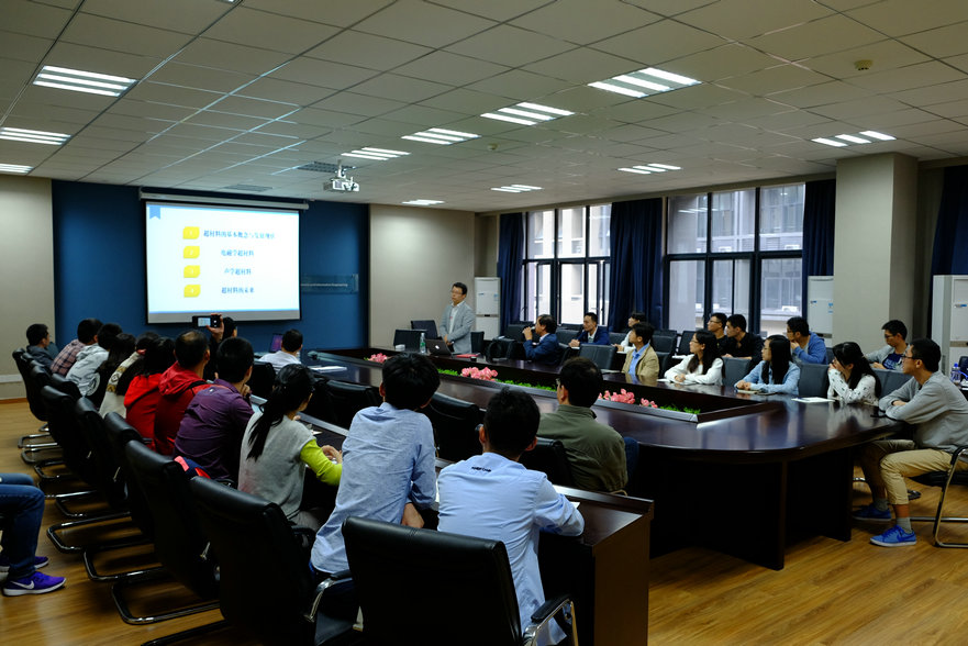 受聘仪式结束后,程强教授做了题为“超材料在电磁学及声学领域中的应用”的精彩学术报告,重点介绍了超材料在电磁学和声学领域中最新的研究热点及研究进展。程强教授的报告内容新颖丰富、非常生动,受到了师生的热烈欢迎。