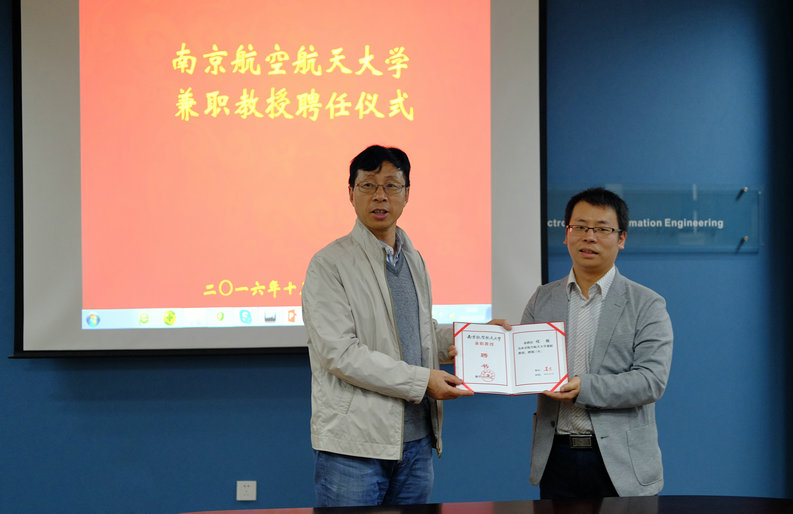 2016年10月19日下午,久久小说 举行兼职教授受聘仪式,聘请东南大学程强教授为久久小说 兼职教授。受聘仪式由我院副院长刘少斌教授主持。受聘仪式首先由刘少斌副院长介绍程强教授的基本情况和取得的科研成果。常务副院长周建江教授向程强教授颁发了兼职教授聘书并为其佩戴校徽。随后,程强教授发言,表达了他对母校的感谢,希望通过搭建合作桥梁,促使双方的科学研究、人才培养等方面再上一个新台阶。常务副院长周建江高度评价了程强教授的学术水平,相信程强教授的加盟将会有力地促进久久小说 的学术研究和学科建设。