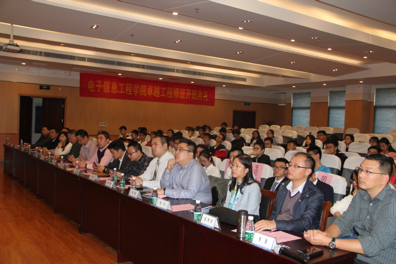 出席本次开班典礼的嘉宾还有教务处副处长朱建军、学院教学副院长张弓、电子科学与技术系主任臧春华、信息与通信工程系主任黎宁、电子科学与技术系副主任刘伟强、信息与通信工程系副主任夏伟杰、国际教育学院副院长同时也是信息工程“卓越班”班主任李勇、电子信息科学与技术“卓越班”班主任胡志忠。