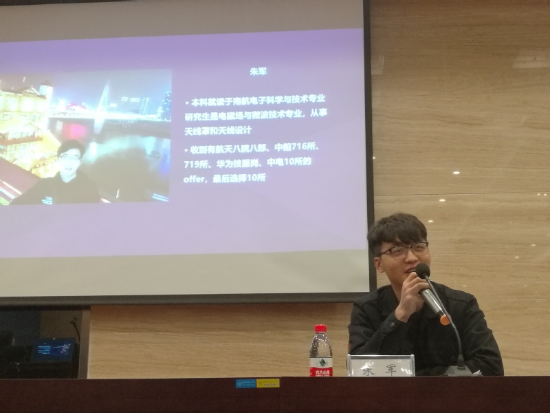 首先是进入中国电子科技集团公司第十研究所的朱军师兄为我们主要讲解他的关于面试研究所的经历,并通过自己的简历格式教大家如何写出一份让面试官满意的简历。