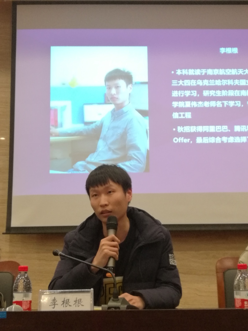 接着是通过内推进入阿里的研发工程师李根师兄从内推的角度向我们介绍面试的流程。并且师兄当场组建了一个讨论组为即将想要进入阿里的学弟学妹们创造内推的条件。