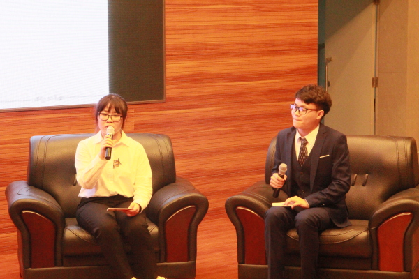 第二篇章,校长特别嘉奖精英奖获得者张浩和美国数学建模竞赛获奖者范琳琳通过对话形式,回望青春,畅谈理想并向同学们介绍自己的科创经历,鼓励同学们在科研路上追梦。