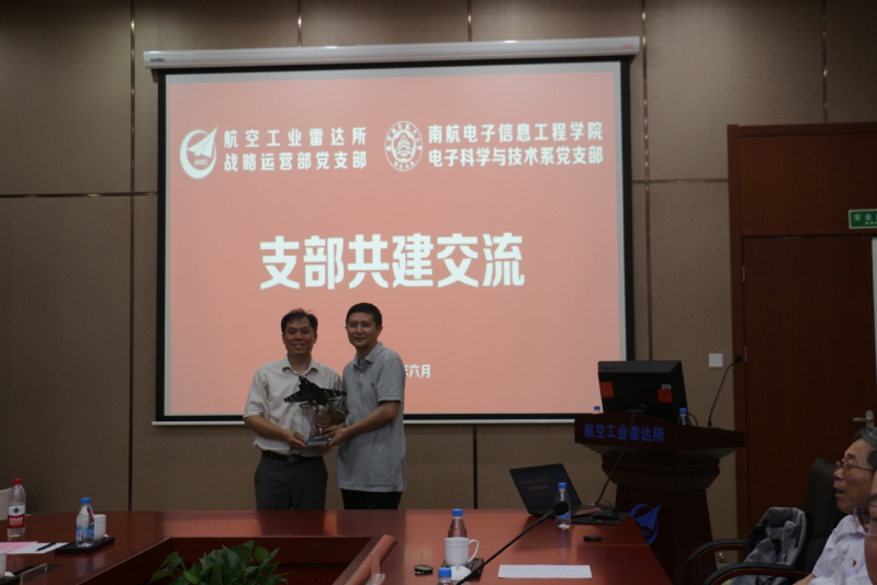 中航工业雷达所党委副书记,纪委书记唐治安,学院党委书记聂东林分别代表各自单位致辞并互赠纪念品,希望双方支部以结对共建为载体,能够进一步相互学习、优势互补,积极探索组织联建、党员互动、活动互联、工作互助、资源共享、经验共鉴、共同发展等有效途径,更加有力地推动双方党建工作、有力地促进双方科技合作与发展。