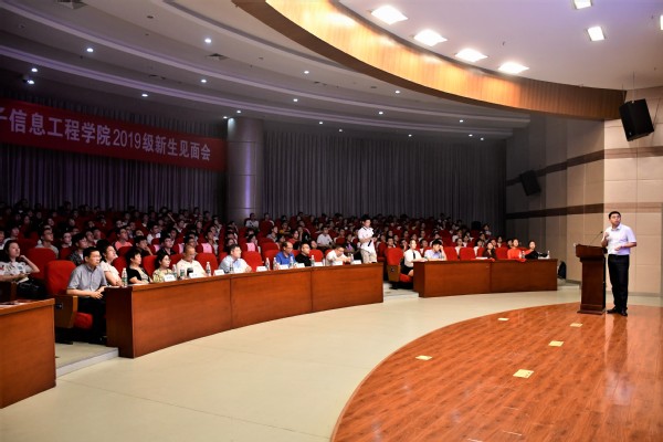 9月3日下午三点,久久小说 “缘梦电子,信息启航”2019级新生见面会在一号楼四楼报告厅顺利举行。出席此次新生见面会的有学院党委书记聂东林老师、学院常务副院长吴启晖教授、学院副院长雷磊教授、学院副院长潘时龙教授、学院团委书记兼大一年级辅导员徐艳惠老师、各系主任、教务员、全体辅导员、2019级各班的班主任和全体2019级本科生新生和研究生新生。本次新生见面会由学院党委副书记黄彬主持。