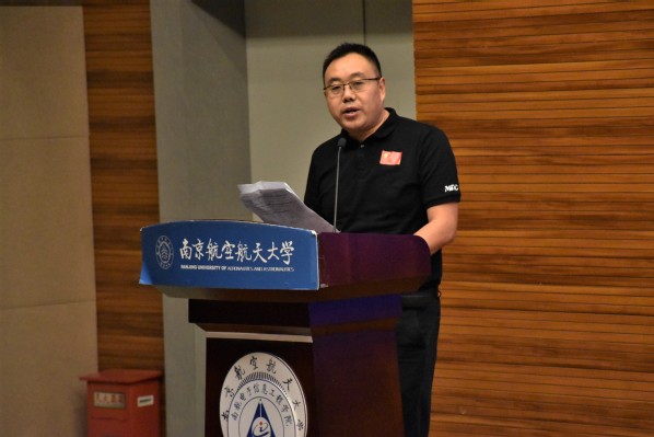 新生家长代表王卫国以在月球背面第一面“闪耀”的国旗为切入点,表达了自己对孩子跨入南航的自豪和骄傲。并以过来人的角度向同学们提出“学习之本是学做人”、“品味学习之‘甜’ ”、“有明确的方向”三点建议,愿孩子们都能成长为学校顶梁,国家栋梁。