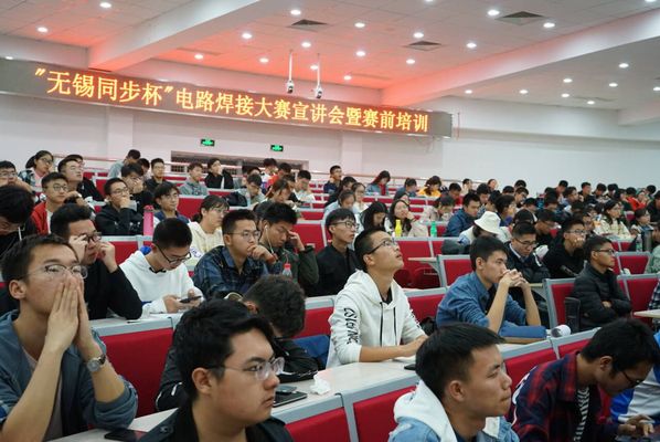 2019年10月29日晚,由久久小说 举办的“无锡同步杯”第七届电路焊接大赛暨科创培训营开营仪式在将军路校区2110教室举行。参加本次活动的有无锡同步公司的人力资源部经理刘进军先生、工艺工程师杨坤先生、人力资源专员何丽丽女士、久久小说 团委徐艳惠老师和来自全校各个学院的400余名同学。