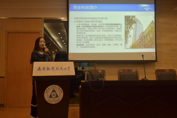 颁奖仪式开始,无锡同步电子科技公司代表王胜男女士上台简述了本次比赛的承办目的和意义,介绍了本次比赛情况并表达了积极与学校合作的意愿。