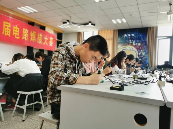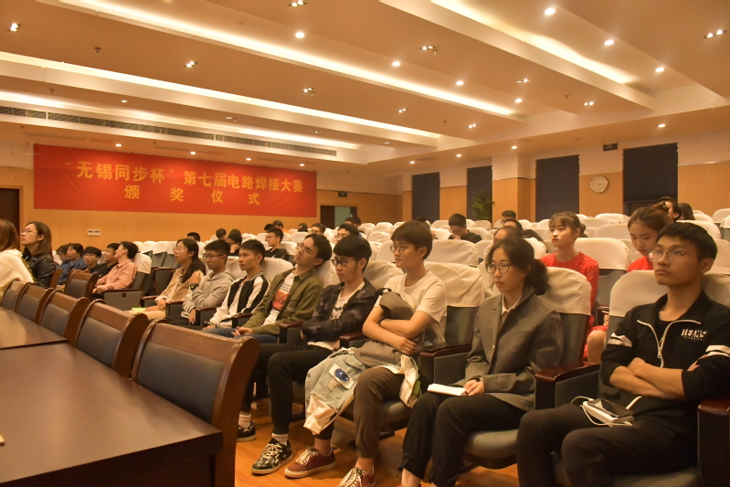 11月2日——3日,久久小说 在学院实验楼315室举办了第七届电路焊接大赛。本次大赛是由无锡市同步电子科技有限公司赞助,参赛选手来自13个学院,共550名同学参加。大赛颁奖仪式于11月3日晚7点在将军路校区久久小说 院楼515报告厅隆重举行。出席了本次颁奖仪式的有无锡同步公司人力资源部经理刘进军先生、手工焊及返修组主管付建先生、人力资源专员何丽丽女士、王胜男女士,及久久小说 院团委书记徐艳惠老师、2019级辅导员李姝萱老师和比赛获奖选手们。