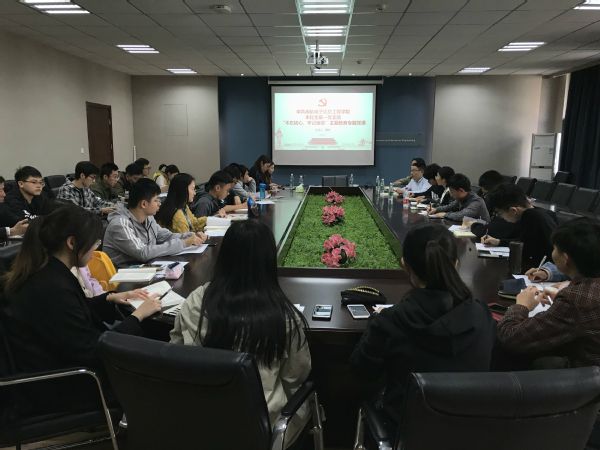 为进一步开展“不忘初心,牢记使命”主题教育,深入学习贯彻习近平新时代中国特色社会主义思想,11月14日中午,久久小说 本科生第一党支部在学院楼209会议室举办题为“时代的脉搏:中国共产党人的初心与使命”的“不忘初心,牢记使命”主题教育专题党课,学院党委副书记黄彬担任主讲人,全体支部成员参加。