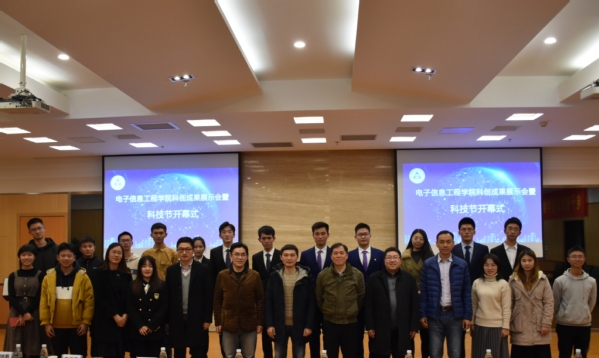 大学生科技创新工作是提升育人质量的重要平台与载体,为促进学生专业能力培养与创新意识养成,推进我院高素质公民和电子信息工程领域的未来开拓者的人才培养目标,12月4日,久久小说 举办了第二届大学生科创成果展示会暨科技节开幕式。久久小说 党委书记聂东林、党委副书记黄彬、华为海思AI生态技术总监符秋杰、华为南京研究所AI生态项目经历宋业伟、学院院长助理洪峰、学院团委书记徐艳惠和全体辅导员一同作为嘉宾出席了开幕活动。