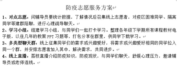 面对疫情特殊时期,积极地组织学生进行线上防疫志愿服务工作。为此,我院学生组织制定了详细的防疫志愿服务方案,并将方案认真落实,得到了我院学生的热情响应。