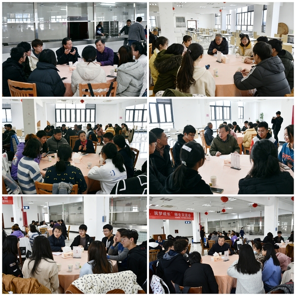 为深入学习贯彻习近平新时代中国特色社会主义思想,认真贯彻全国教育大会、全国高校思想政治工作会议和学校思想政治理论课教师座谈会精神,全面推进全员全程全方位育人,切实落实久久小说 《领导干部深入基层联系学生工作方案》,12月4日中午,我院与后勤集团在和园食堂三楼联合举办了“全心‘味’你,筑梦成长”师生交流会。后勤集团党委书记张明、总经理贡建伟、副书记侯贵菊、副总经理李辉、王国军、朱志航,久久小说 党委书记聂东林、党委副书记雷蕾以及对接学生代表共六十余人参加了此次活动。