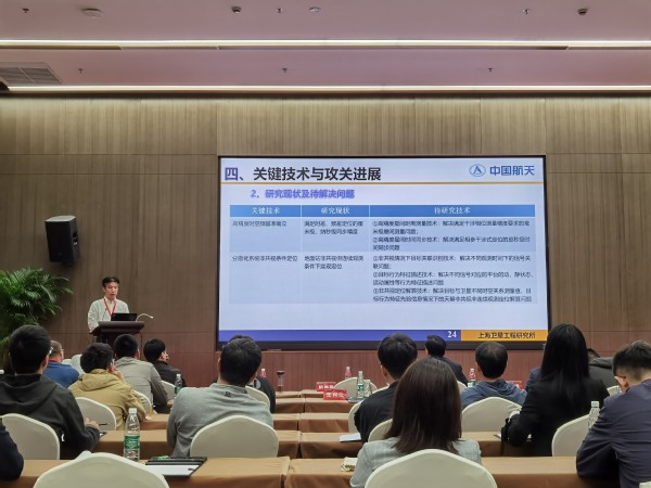上海卫星工程研究所所长陈占胜作题为《分散化高可重构天基电磁频谱监测系统应用分析》的主题报告,他首先介绍了电磁频谱战、天基装备等相关概念,引出天基电磁频谱监测系统面临的发展瓶颈,提出解决之道为分散化电磁频谱监测系统,并结合其研究现状对关键技术及待解决问题作了详细说明。