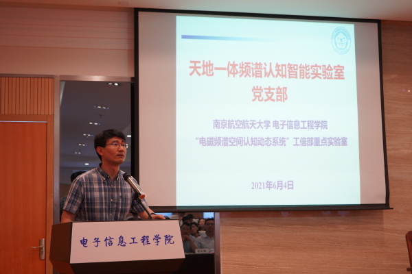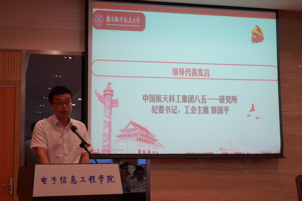 中国航天科工集团八五一一研究所第一党支部支部书记冀贞海介绍了信息对抗总体部第一党支部的基本情况,并且详细讲述了支部特色活动以及对于此次共建的畅想。天地一体频谱认知智能实验室研究生党支部指导老师朱秋明围绕实验室党建、科研成果、人才培养向在场的领导及师生汇报了党支部的基本情况。领导代表中国航天科工集团八五一一研究所纪委书记、工会主席徐国平做了总结发言。