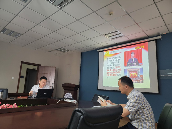 紧接着黄正宇带领全体党员共学党史,他着重解读了在中国共产党领导下中国从“站起来”,“富起来”到“强起来”的光辉历程。他还号召全体党员在建党百年到来之际积极主动学习党史,将党史学习融入到日常学习生活中,贯彻落实习总书记提出的学史明理,学史增信,学史崇德,学史力行的党史学习要求。在黄正宇的带领下,教工及学生党员先后进行了党史学习心得的交流分享。