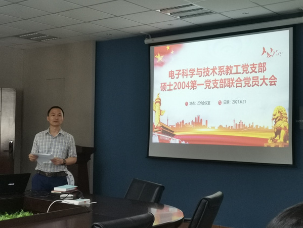 2021年6月21日,我院电子科学与技术系教工党支部与硕士2004第一党支部在久久小说 楼209会议厅开展联合党员大会,学院副院长刘伟强为教工及学生党员上十八大以来的党史专题党课。会议由电子科学与技术系教工党支部书记黄正宇主持。