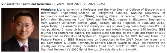 刘伟强教授现任久久小说 /集成电路学院副院长、博士生导师,曾获得国家自然科学基金优秀青年基金,第18届霍英东教育基金会高等院校青年科学奖,中国电子学会优秀科技工作者,入选斯坦福大学2020年全球前2%科学家“年度影响力”榜单,江苏省集成电路学会理事,IEEE、中国电子学会和中国计算机学会高级会员。长期从事高能效高安全性新兴计算集成电路与系统的设计研究,出版英文专著2部,发表论文190余篇。担任Proceedings of the IEEE客座编委,以及IEEE Transactions on Computers、IEEE Transactions on Circuits and Systems I: Regular Papers、IEEE Transactions on Emerging Topics in Computing等芯片设计领域国际顶级期刊编委。