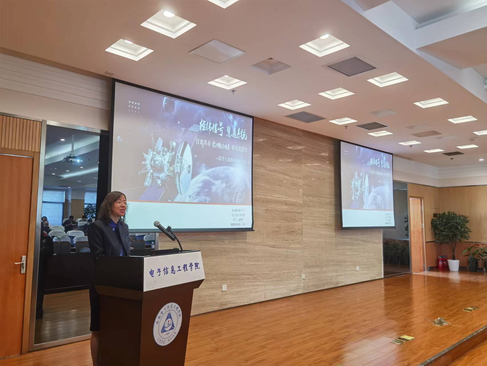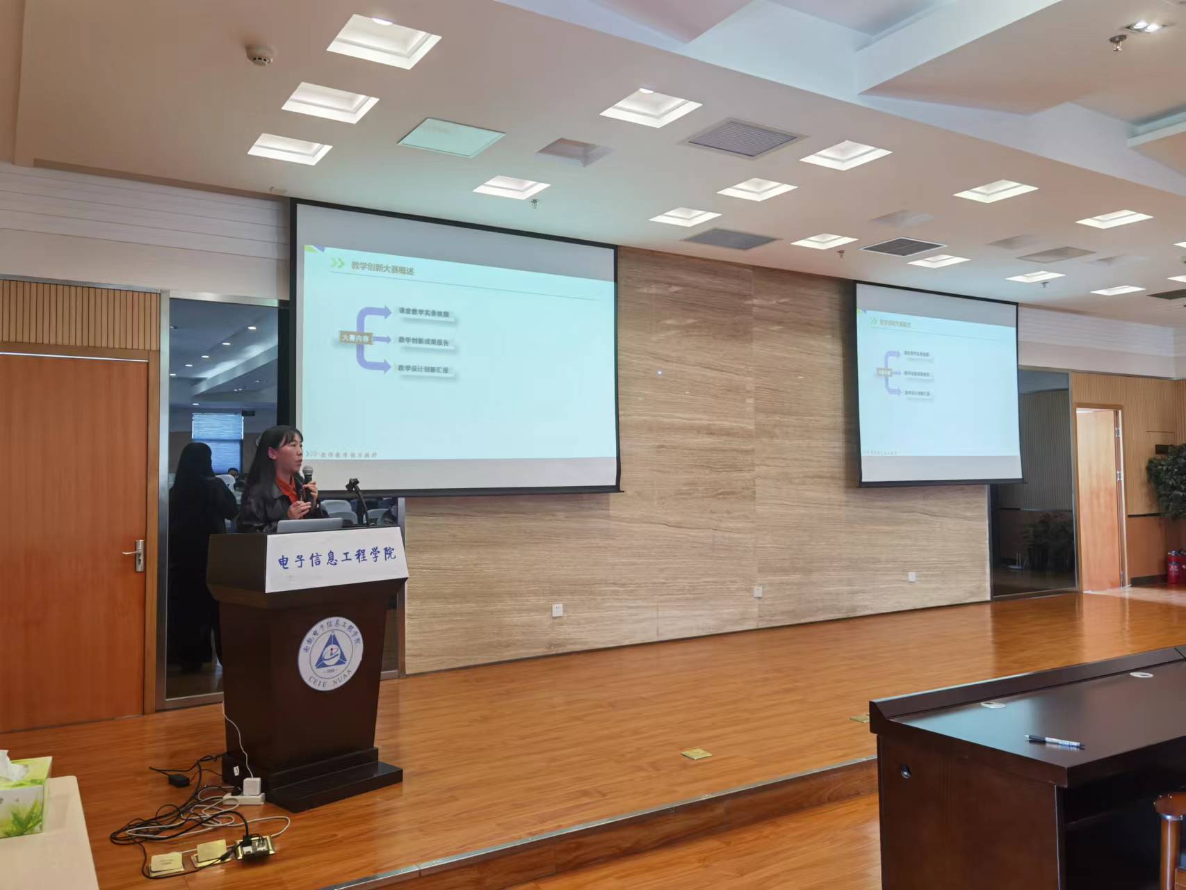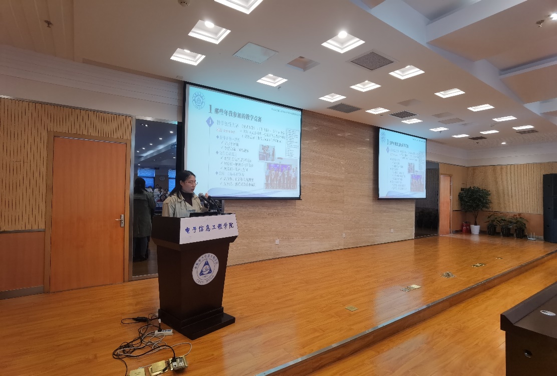 黎宁老师做了题为《经纬信号、慧通系统—打造具有空天电子信息特色课堂》的主题报告,她以信号与课程为例,对如何进行教学内容优化、教学模式改革等展开了详细介绍,并现场展示了其线上教学资源建设情况。