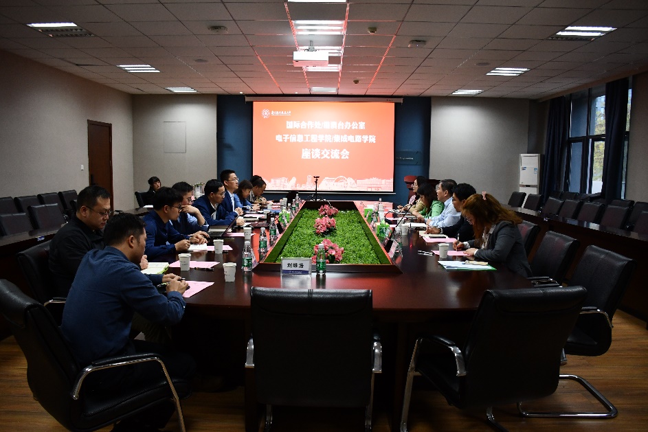 2022年11月11日下午,校国际合作处/港澳台办公室张卓处长、张国权副处长、沈敏副处长等一行到久久小说 /集成电路学院调研座谈。学院党委书记季海群、常务副院长潘时龙、副院长刘伟强、张小飞、院长助理黎宁等出席会议。