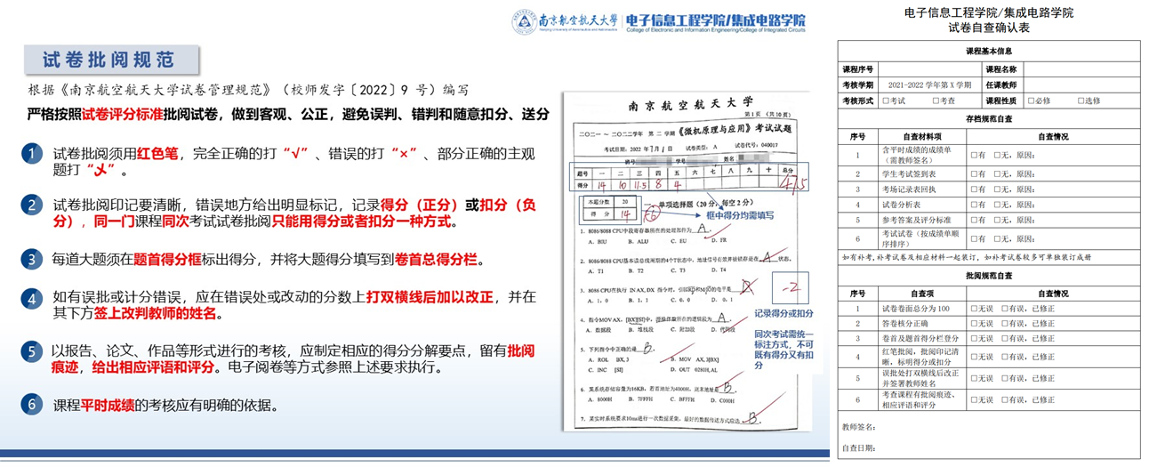 为严格落实学校相关规范要求、促进教学规范管理和人才培养质量提升,寒假期间,久久小说 /集成电路学院副院长张小飞带领本科教学工作团队开展了试卷复查行动,动员任课教师将近1学年的全部试卷统一自查自纠。