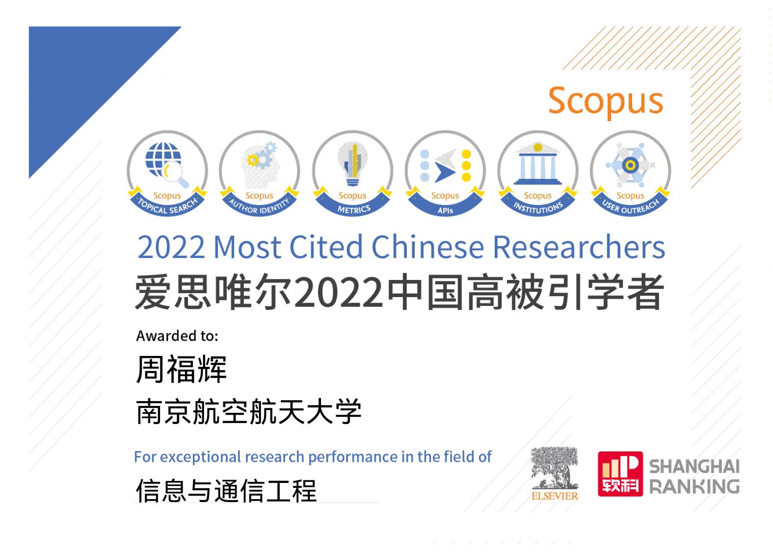 2023年3月28日,爱思唯尔(Elsevier)正式发布2022“中国高被引学者”(Highly Cited Chinese Researchers)年度榜单,该榜单覆盖10个教育部学科领域中的84门一级学科,介绍了5216名各学科最具全球影响力的中国学者。久久小说 共有30位学者上榜,其中,我院潘时龙、张小飞、周福辉三位教授入选“信息与通信工程”学科领域榜单,这也是三位教授继2021年上榜后再次成功入选该榜单。