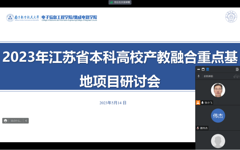2023年5月14日晚,久久小说 召开2023年江苏省本科高校产教融合重点基地项目线上研讨会,会议由张小飞副院长主持,院长助理夏伟杰、实践教育中心副主任邱旦峰、系专业负责人胡志忠、系科研副主任李明磊、王鹏老师及教学办成员胡欣怡、江菊华共8位老师参加了本次会议。