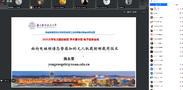 南京航空航天大学大学生主题创新区学术夏令营电子信息会场于2023年7月6日圆满举行。本次学术夏令营在线上举行,邀请了南京理工大学与南京航空航天大学电子信息领域的知名专家,吸引了近百名全校本科生踊跃参与。