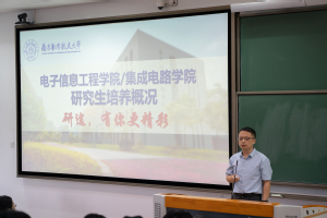 8月31日,我院“研途有你,电亮未来”2023级研究生师生见面会在将军路校区顺利举行。学院常务副院长潘时龙,副院长李茁、刘伟强、朱岱寅,院党委副书记雷蕾,研究生导师代表黎宁,各系主任,院团委书记、教务员、辅导员及全体2023级研究生参会,见面会由学院团委书记、博士生辅导员席维唯主持。