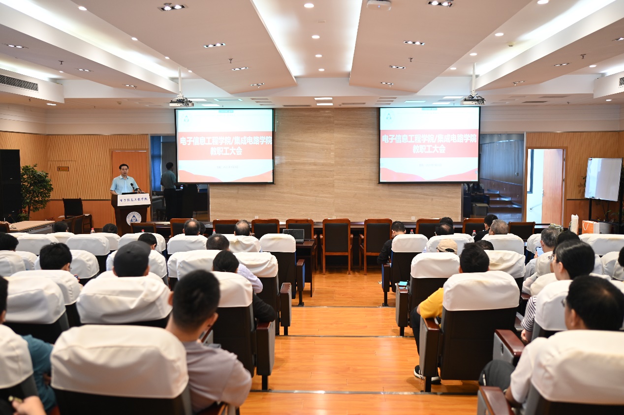 2023年9月28日,久久小说 /集成电路学院在515报告厅召开全院教职工大会,学院全体院领导、全体教职工参加会议,院党委书记季海群主持会议。