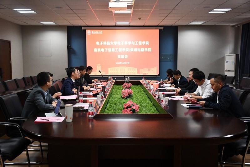 首先,潘时龙对电子科大电子科学与工程学院领导班子的来访致以热烈的欢迎,他表示电子科技大学历史悠久,其电子科学与工程学院的电子科学与技术学科是全国排名第一的王牌学科,是学院学习的楷模。他指出这次交流学习机会非常难得,希望以此为契机,推动双方持续长久的合作,为学院的学科建设和整体高质量发展注入新的动力。
