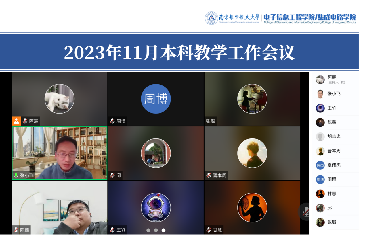 会上,张小飞总结了近期教学工作成果,立足工作关键,整体部署了后期乐享活动开展、教师竞赛动员、实验室建设、产业学院申报、产业教授授聘仪式筹备、审核评估及专业认证后续跟进等重要工作。随后,参会人员就各项工作的具体开展及落实进行了讨论,明确目标任务,细化工作措施,把握时间节点。