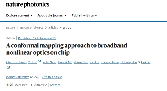 近日,久久小说 微波光子技术国家级重点实验室罗宇教授联合南京大学物理学院刘辉教授课题组,在国际光子学顶刊《Nature Photonics》上发表题为“A conformal mapping approach to broadband nonlinear optics on chip”的学术论文。该论文提出了基于变换光学的通用策略,通过设计具有空间梯度曲率的弯曲加速波导,实现了片上宽带非线性频率转换。实验室罗宇教授和南京大学刘辉教授为共同通讯作者。