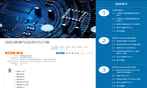 “微机原理与应用”是一门面向久久小说 电子信息类专业学生开设的重要专业基础课程,通过基础性、系统性、实用性和先进性的课程内容,从计算机基础知识讲授到综合应用系统设计,全面培养具有系统设计能力的新工科人才。该课程具有悠久的历史,近年不断进行教学创新改革,建设了SPOC课程网站,出版了多本国家级规划教材,采用线上线下混合式教学设计,并结合多种创新教学模型和方法,有效促进了以学生为中心的自主性研究性学习。