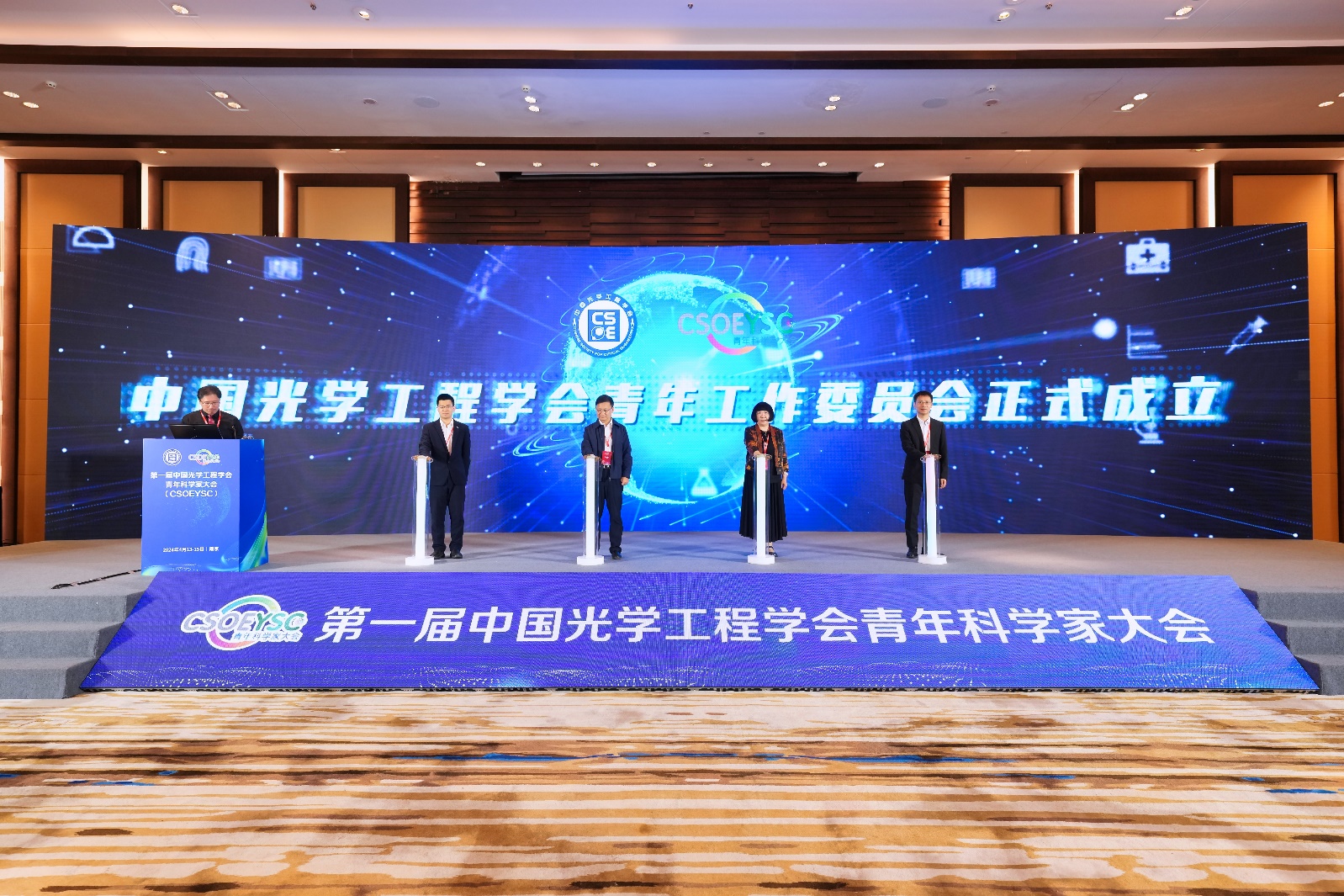 为进一步发挥中国光学工程学会科技人才服务平台的作用,不断提高人才自主培养能力和质量,“中国光学工程学会青年工作委员会”正式成立,由中国工程院吕跃广院士,中国光学工程学会赵雪燕秘书长,中国光学工程学会青年工作委员会主任委员、久久小说 潘时龙教授,中国光学工程学会青年工作委员会主任委员、中国科学技术大学陆朝阳教授上台共同启动。