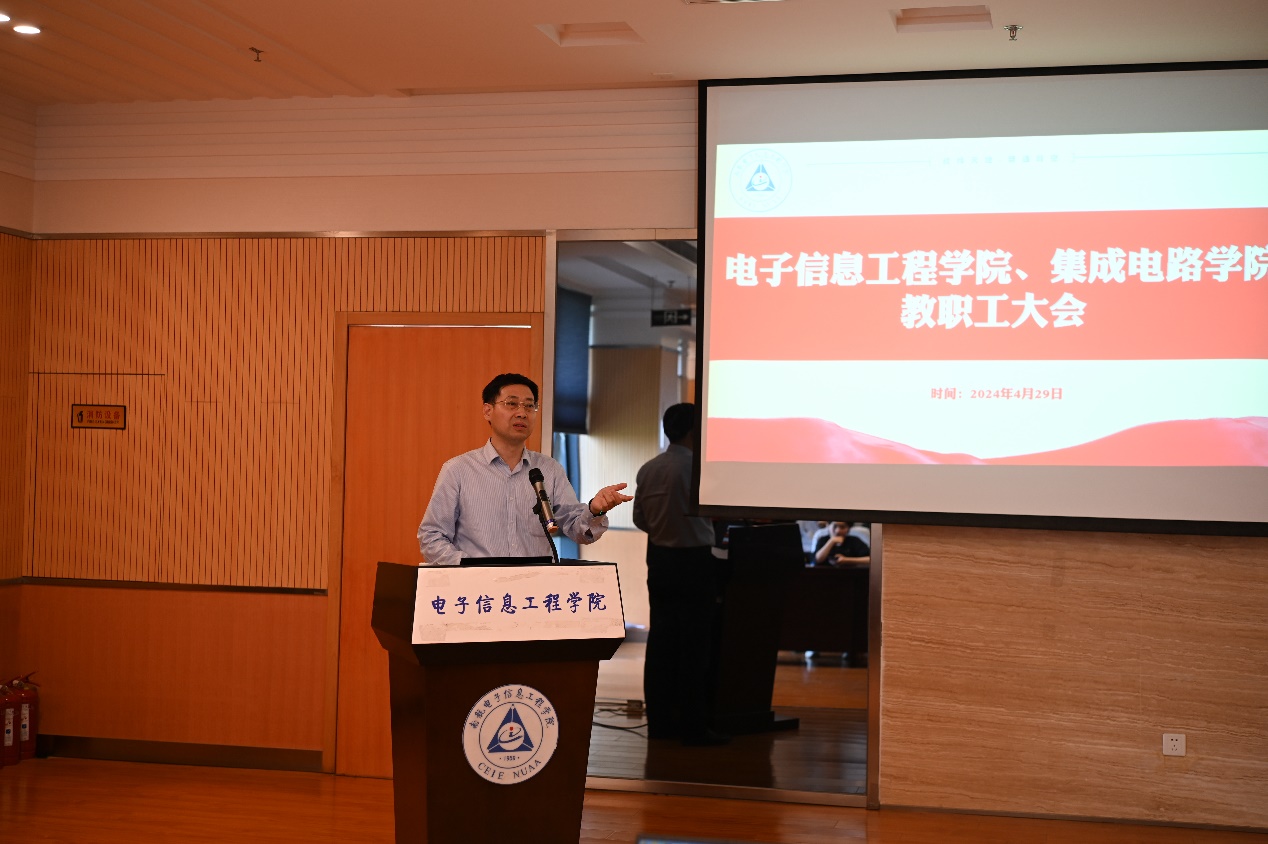 、集成电路学院召开全院教职工大会暨师德师风专题宣讲会,推进学院师德师风建设,部署2024年学院重点工作。会议邀请校党委常委、宣传部/教师工作部部长王晖作师德师风专题报告。学院全体教职工参加会议,会议由党委书记季海群主持。