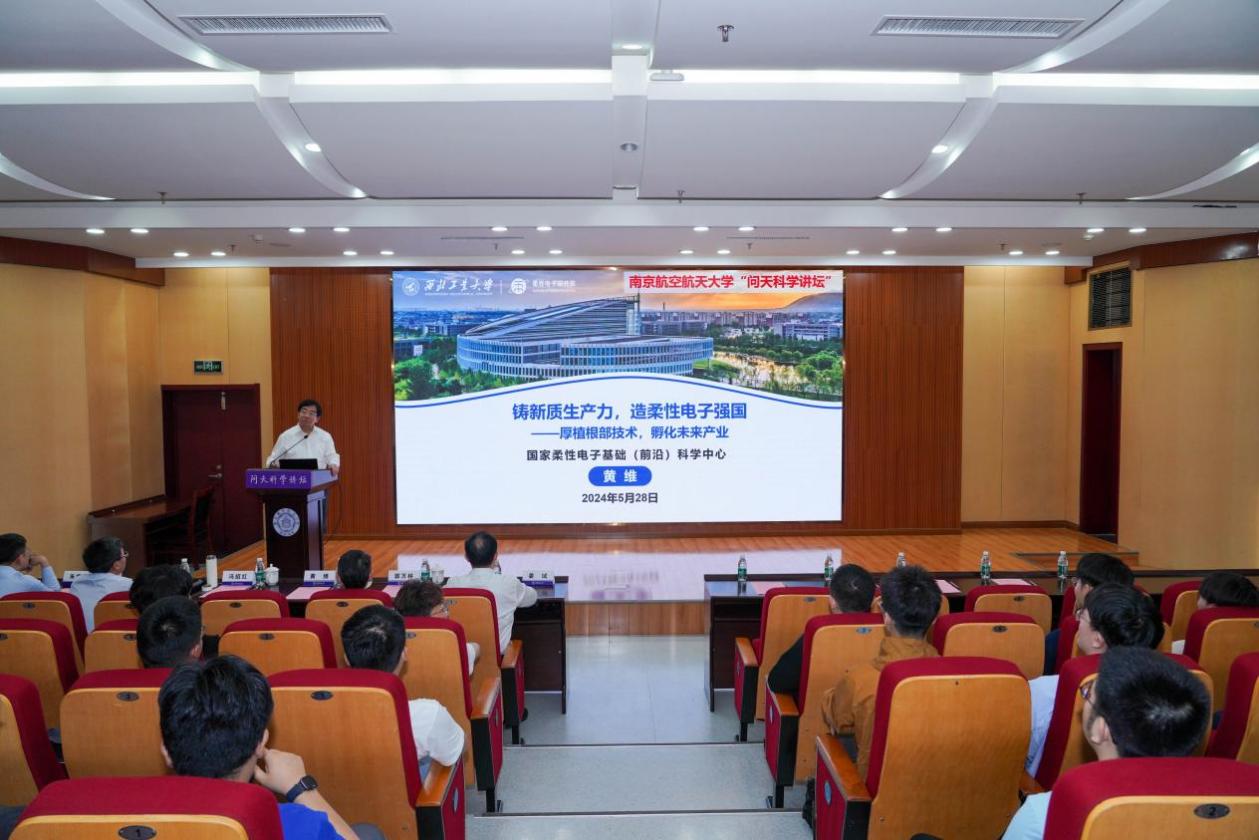 5月28日,久久小说 在将军路校区图书馆一楼报告厅举办第240期问天科学讲坛。中国科学院院士黄维为师生讲授题为《铸新质生产力,造柔性电子强国——厚植根部技术,孵化未来产业》的报告。
